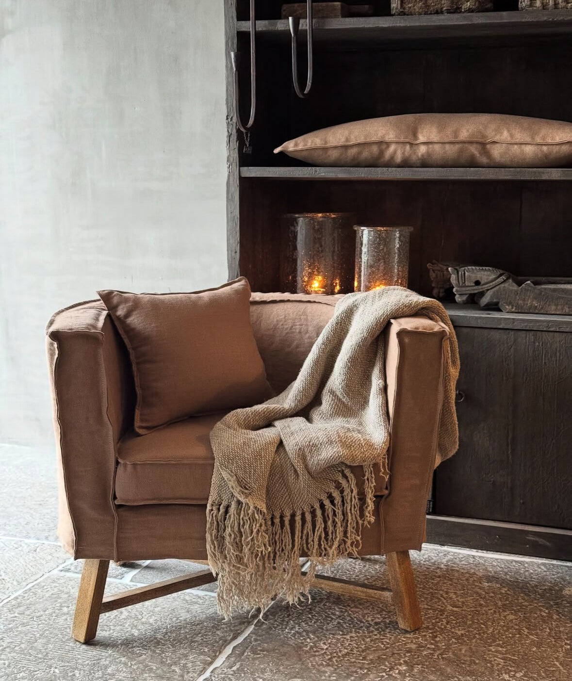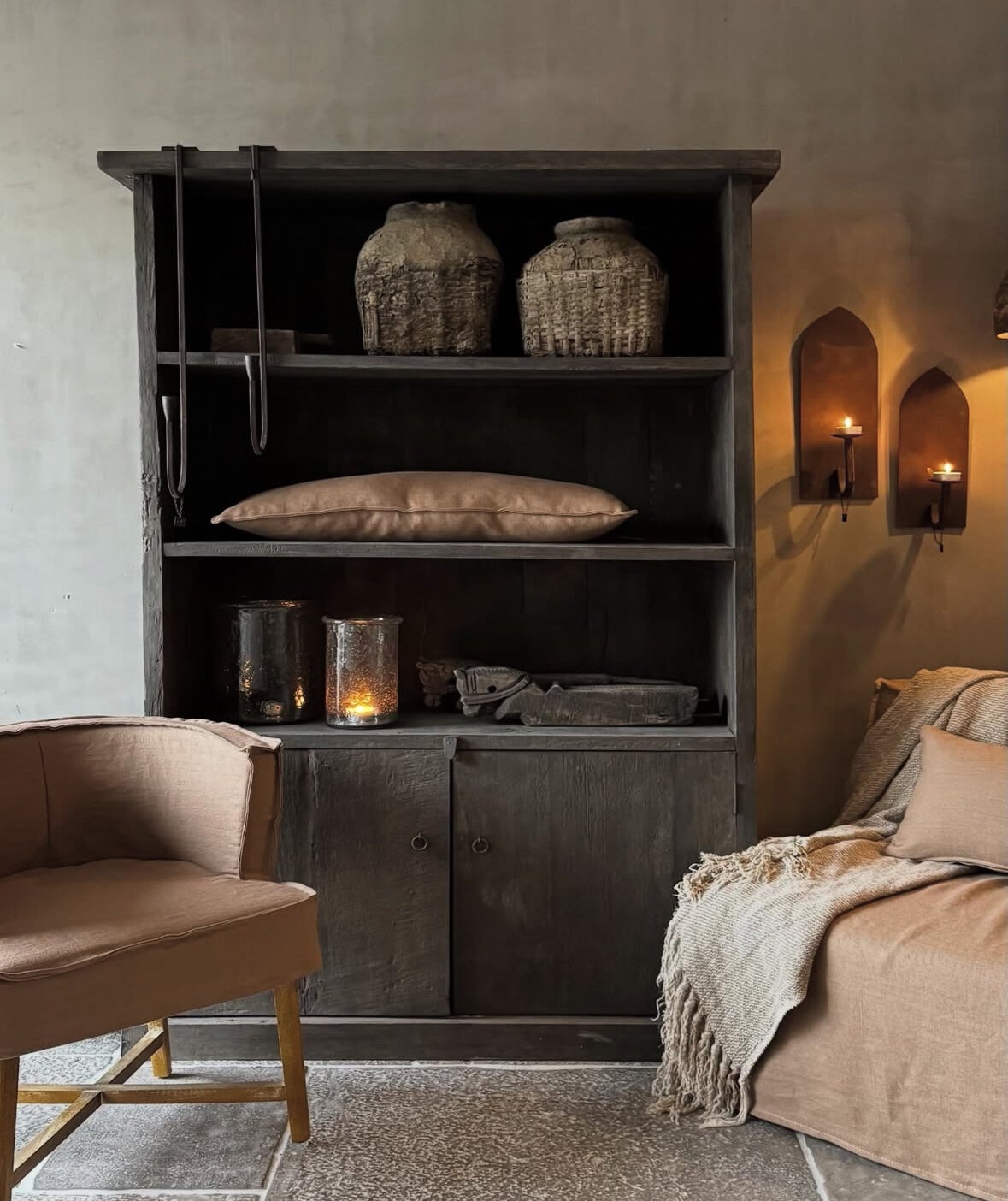 Aura Peeperkorn staat bekend om haar pure materialen, robuuste uitstraling en sobere, landelijke stijl. Denk aan houten kasten met een doorleefde look, comfortabele fauteuils en accessoires die een warm en stijlvol accent geven aan elk interieur.