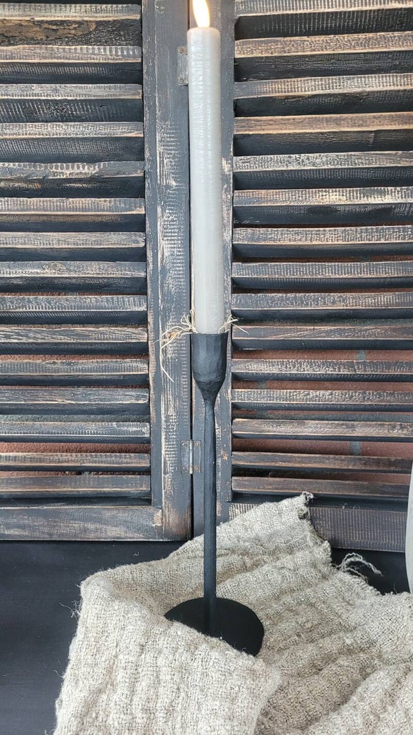 Gietijzeren kandelaars leuk te combineren met een "led" diner kaarsje.