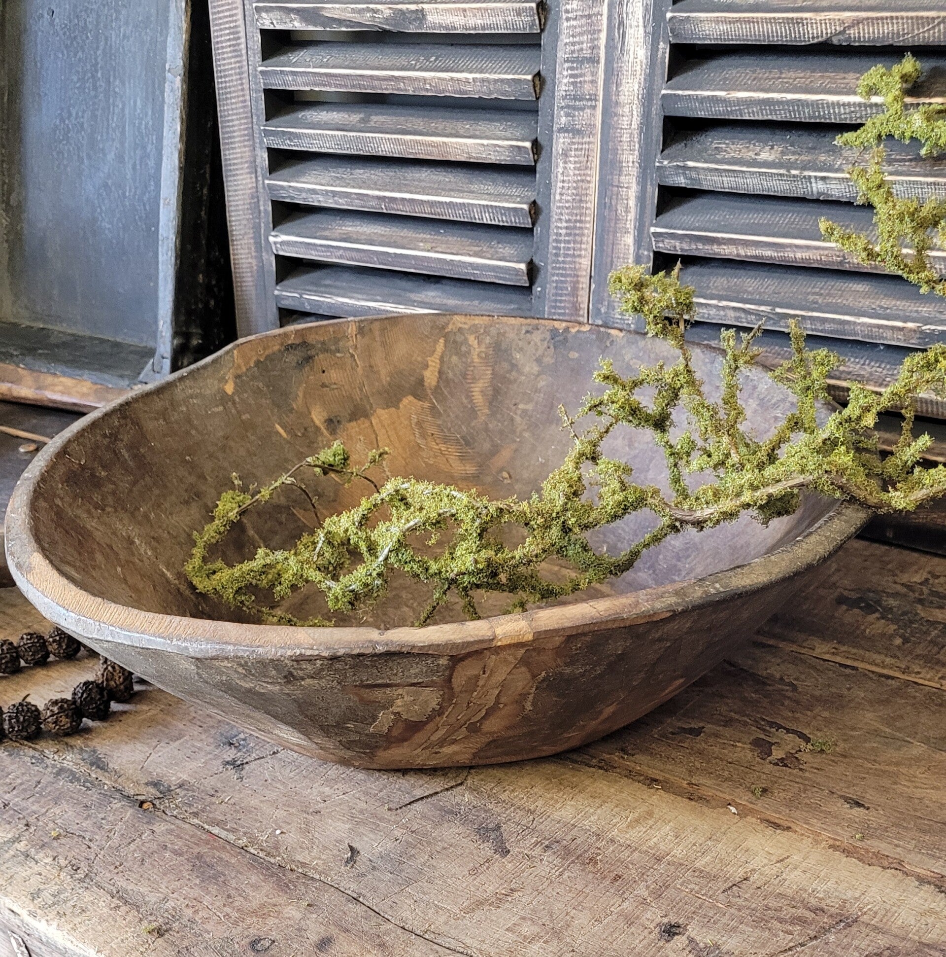 Oude houten schalen zijn fantastische decoratieve elementen voor een stoer, sober en landelijk interieur. Hun natuurlijke textuur en verweerde uitstraling voegen karakter toe aan elke ruimte. Plaats er wat gedroogde bloemen, kaarsen of zelfs kleine decoratieve voorwerpen in voor een rustieke touch die de hele ruimte verheft.