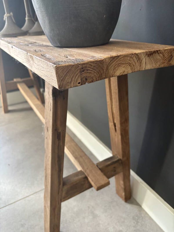 De natuurlijke houtafwerking en het tijdloze ontwerp zorgen voor een rustieke uitstraling die in elke ruimte tot zijn recht komt. Praktisch én sfeervol – gebruik het als zitplek, opbergruimte of decoratief element.