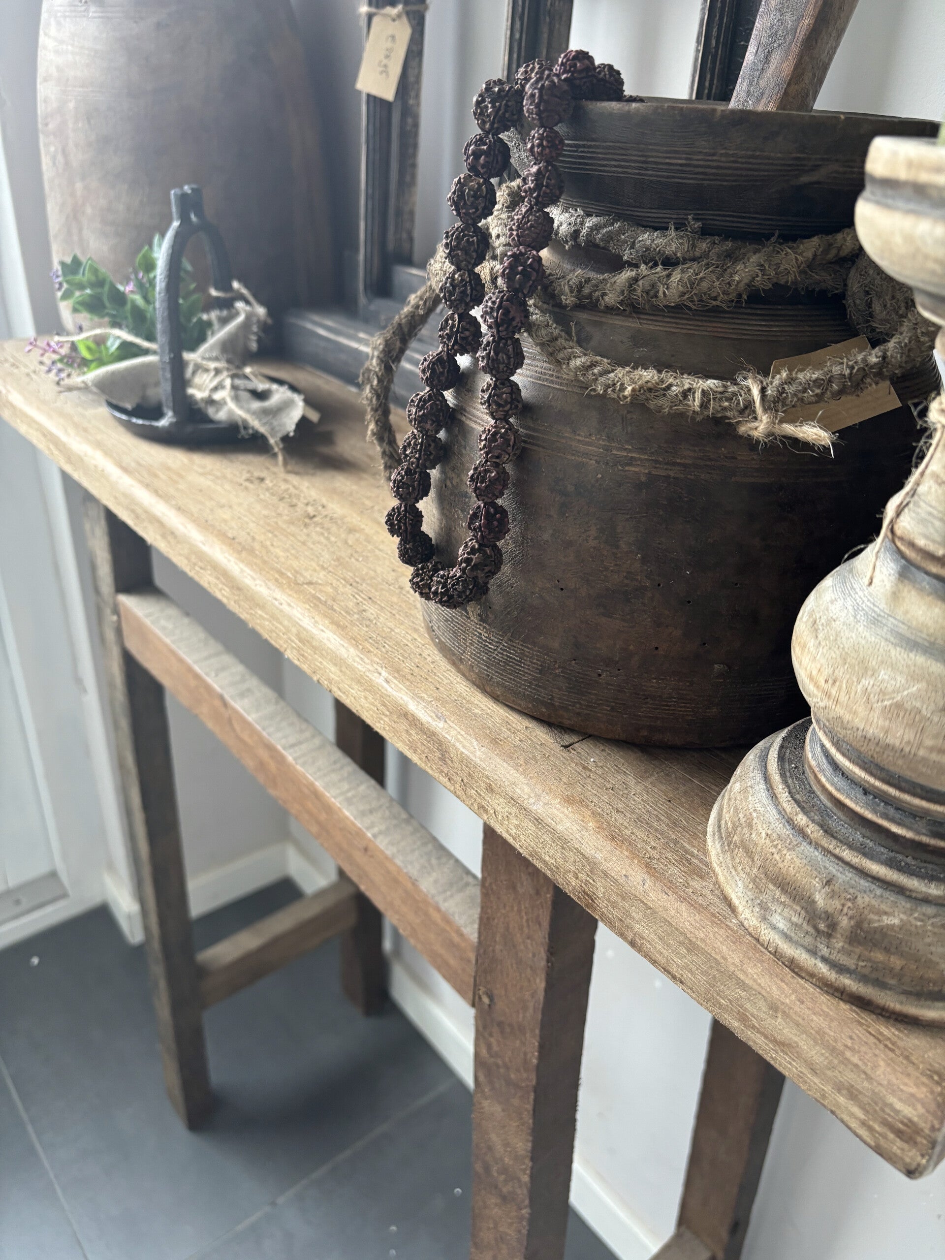 Ontdek de rustieke elegantie van ons handgemaakte houten side table, perfect ontworpen om een warme, landelijke sfeer toe te voegen aan uw slaapkamer, gang of woonkamer. Dit prachtige meubelstuk combineert functionaliteit met een authentieke charme, waardoor het een waardevolle toevoeging is aan elk interieur.