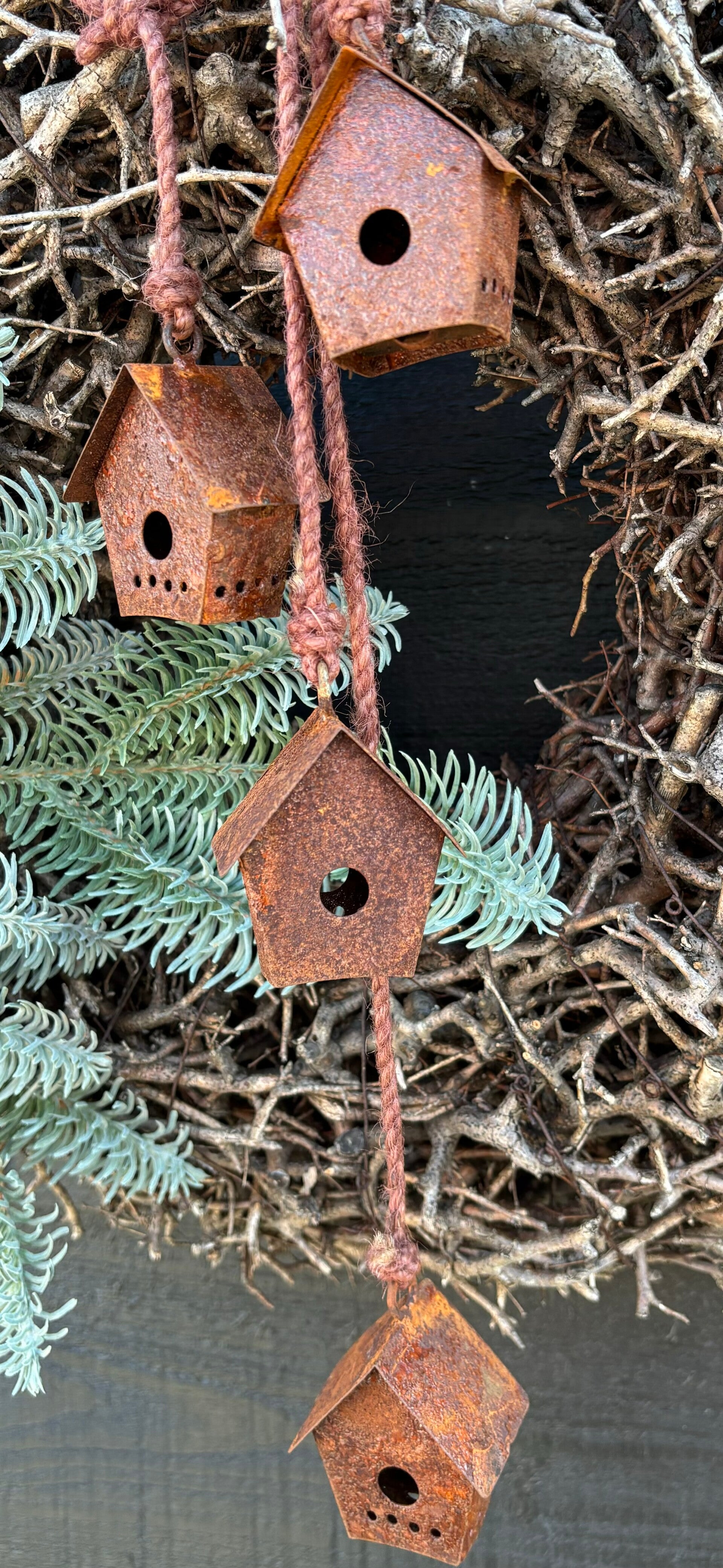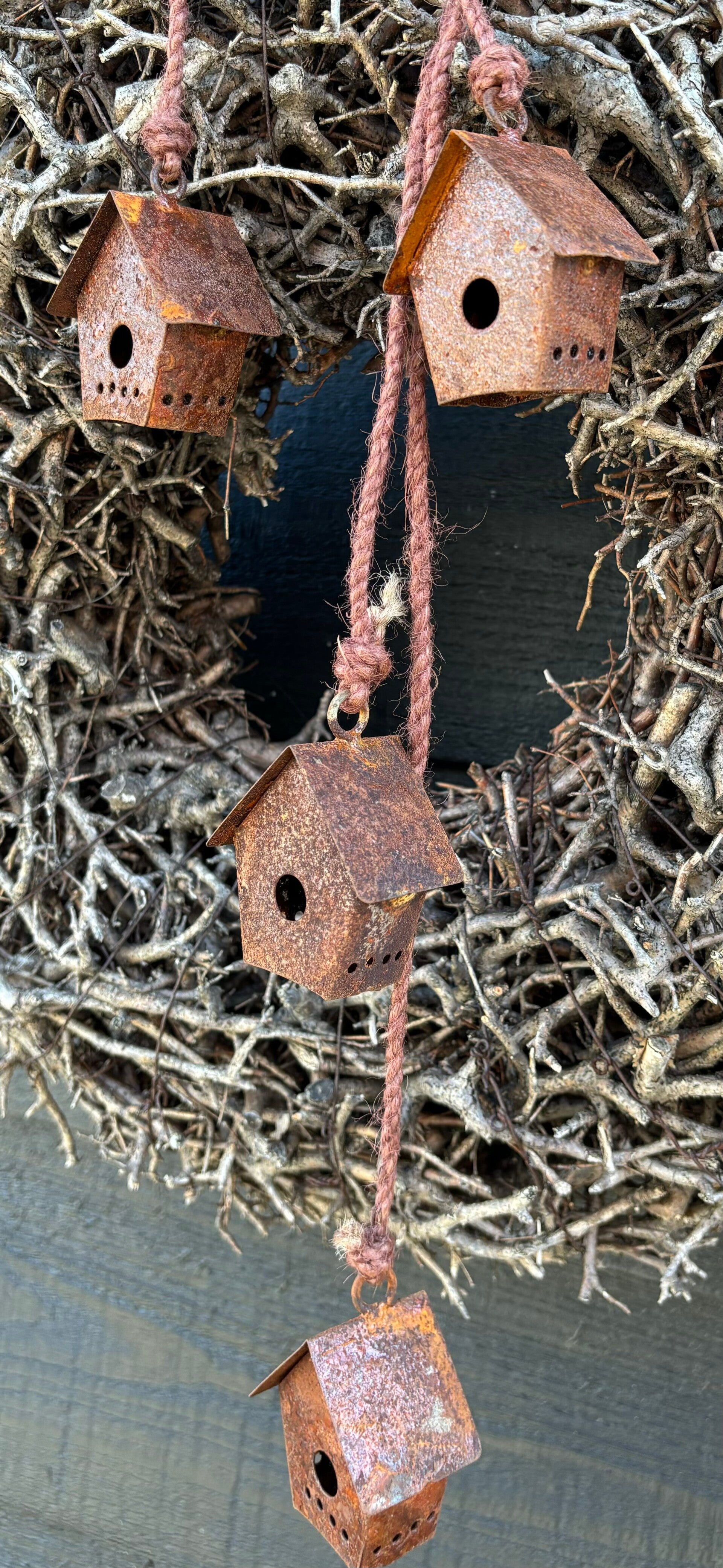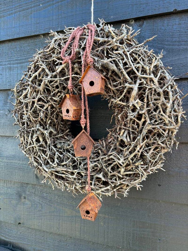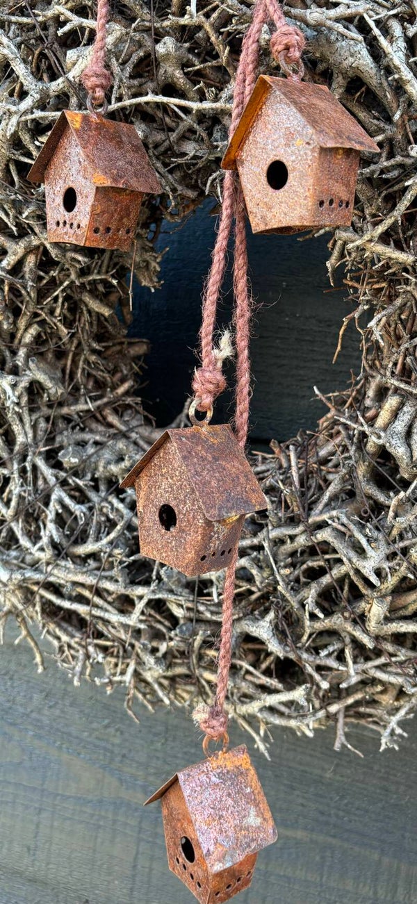 Leuk hanger met 4 roestige huisjes.