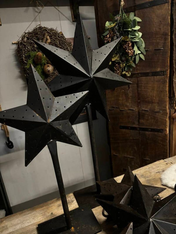 Deze metalen kerstster van 50cm hoog staat stevig op een robuuste voet, ideaal voor decoratie binnenshuis of op een beschutte plek buiten. De ster heeft een strakke, industriële uitstraling en is onbehandeld, waardoor deze na verloop van tijd een natuurlijke roestige kleur krijgt. Dit unieke verouderingsproces geeft de ster een warme, vintage look die perfect past bij de feestdagen.