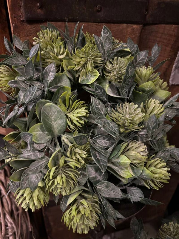 Leuke groene Eucalyptus kunst krans met bloemetjes