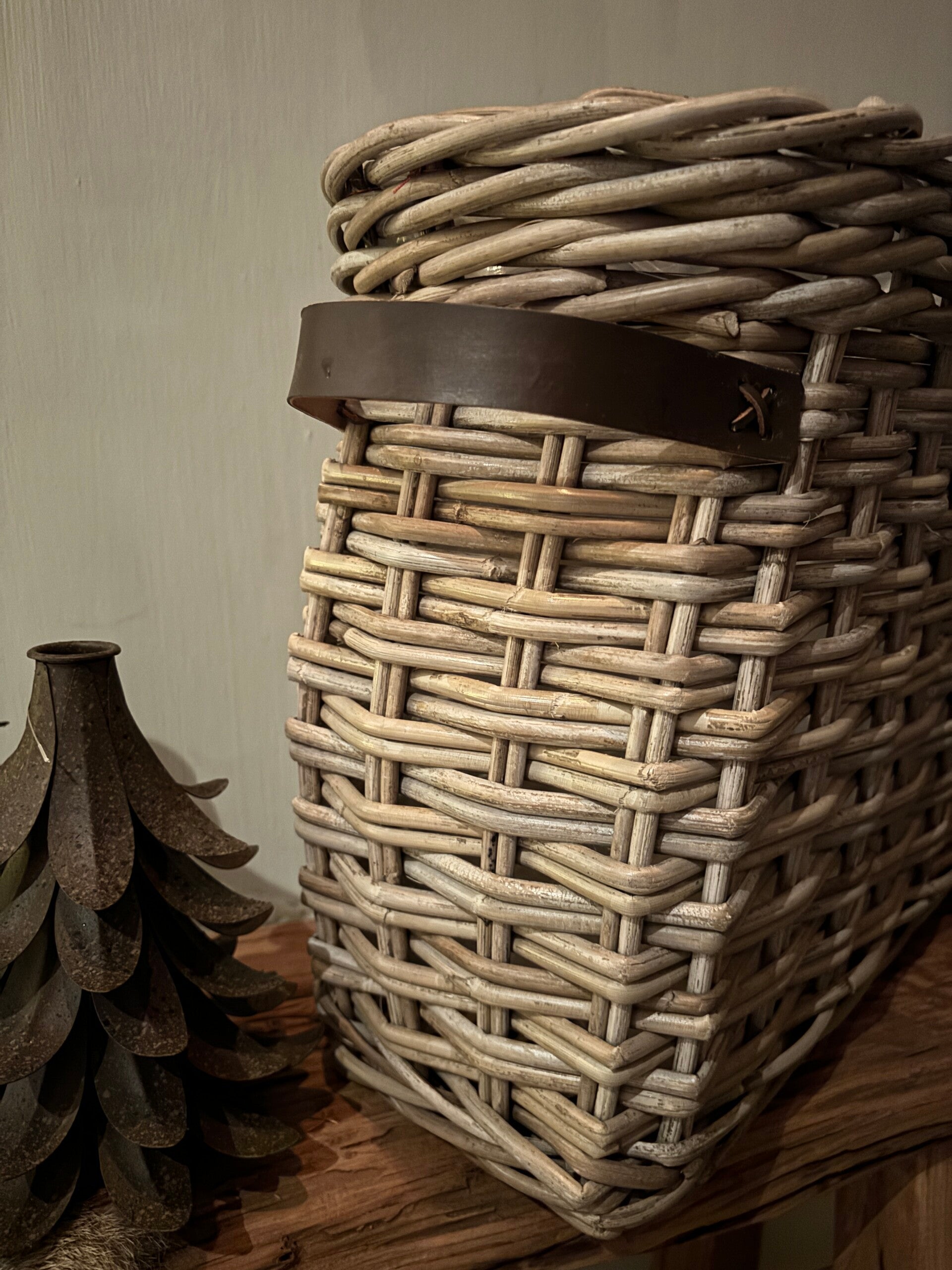 Verkrijgbaar in drie maten. Niet te diep, dus ideaal voor de vensterbank – of leuk op tafel of bankjes. Aan de zijkant zitten twee leren hengsels.