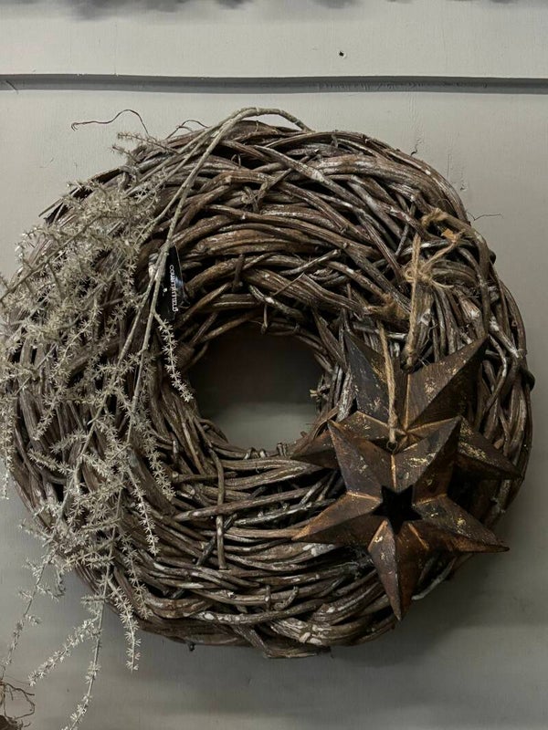 Deze krans is gemaakt van wijnranken in de kleur Greywash.