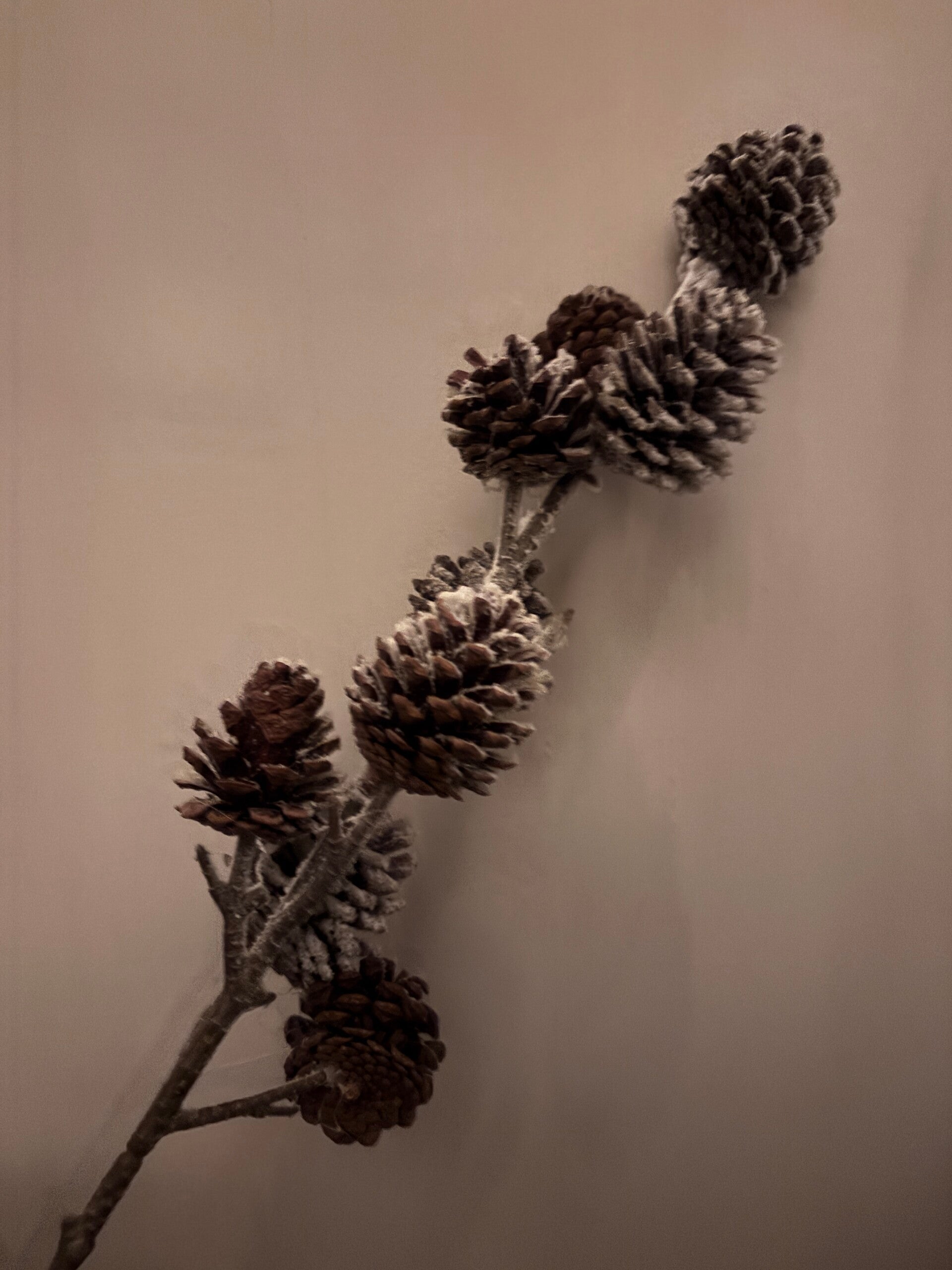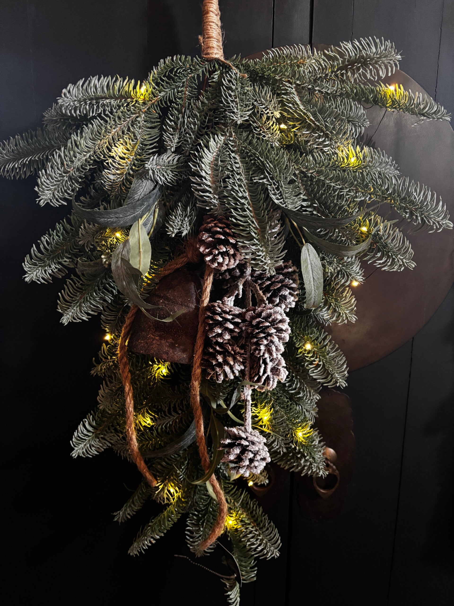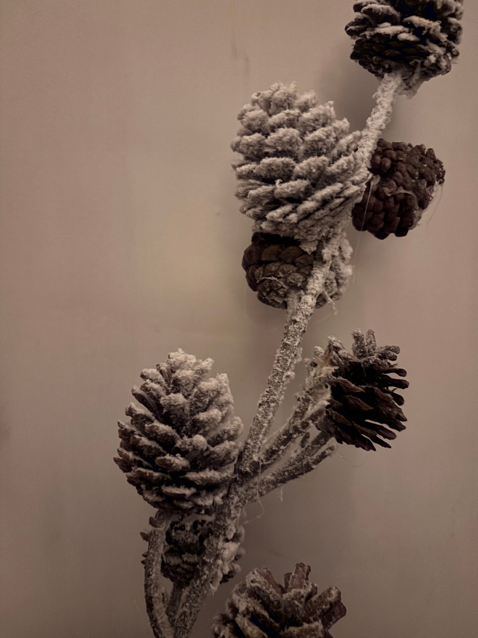 Mooie dennenappels met sneeuw bedekt takken zijn 72cm lang en prachtig te combineren in toeren of een mooie kerststuk.