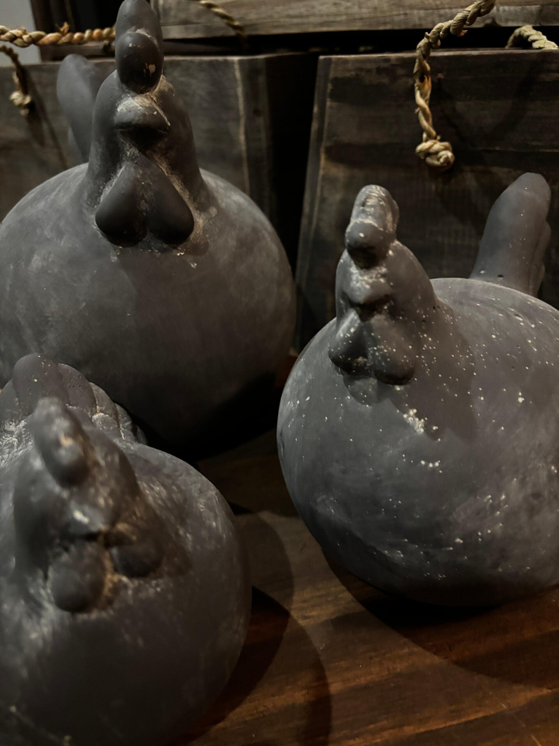 Breng een vleugje landelijke charme in je interieur met onze Grey kippen! Perfect om een leuk hoekje, bijzettafel of vensterbank mee op te vrolijken.