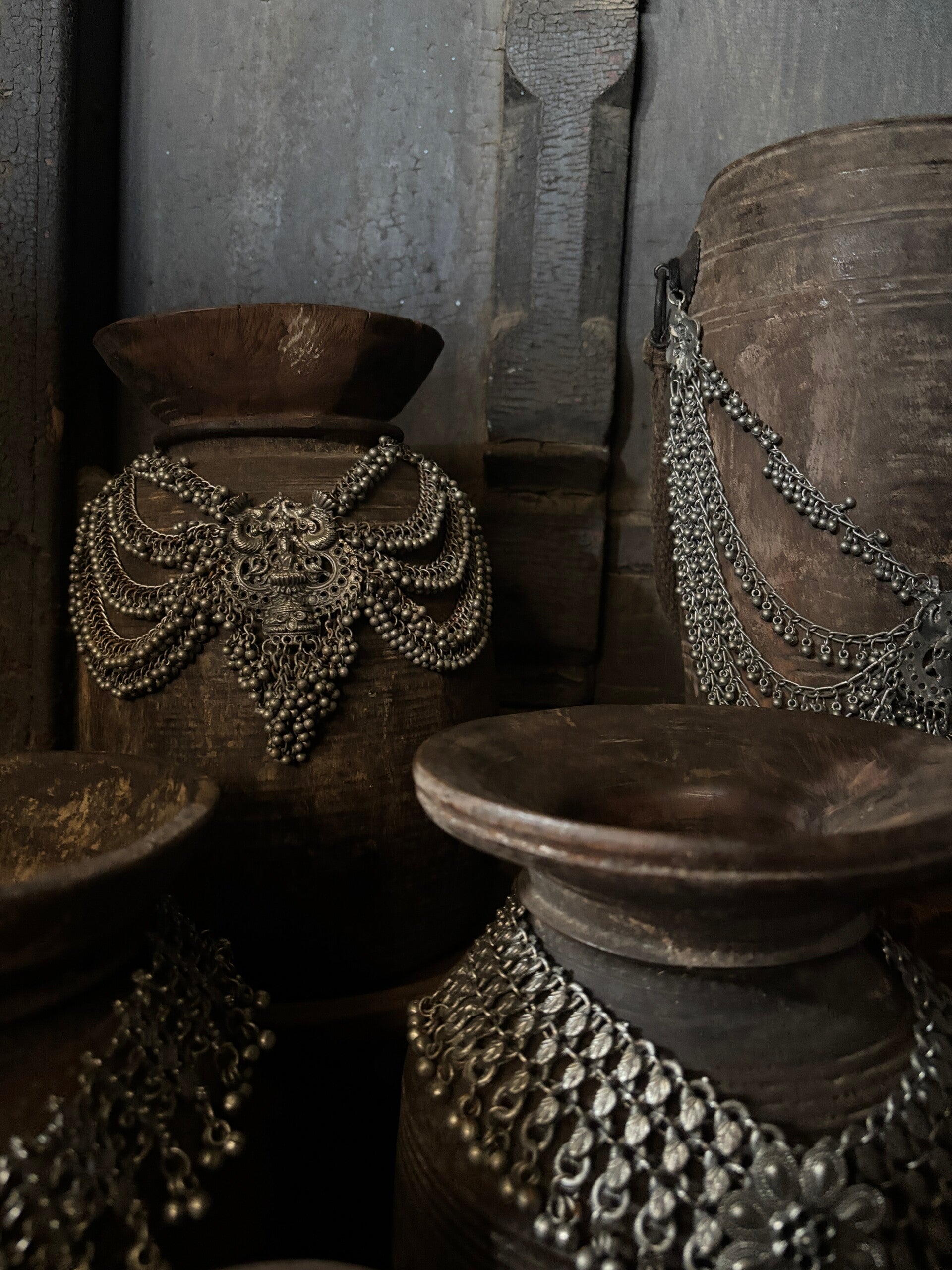Prachtige oude Nepalese pot handgemaakt met woonketting elke pot is uniek