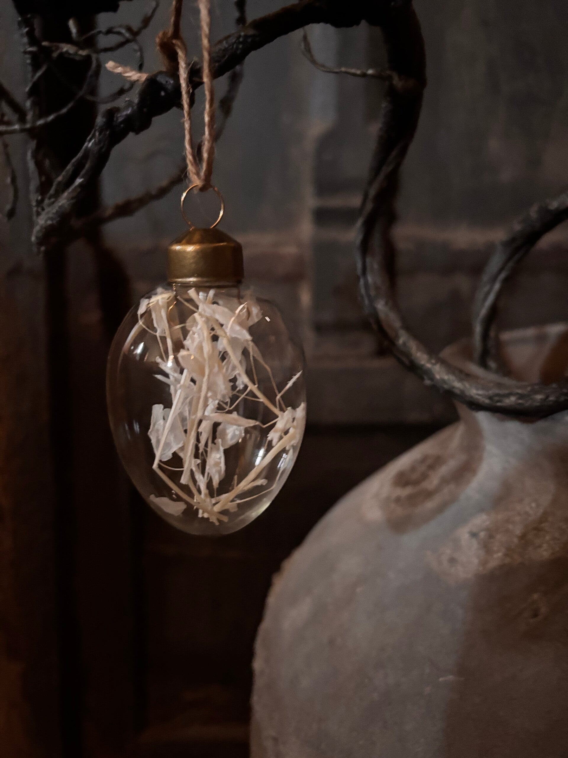 Set van 4 Glazen Eieren met Droogbloemen – Wit/Naturel