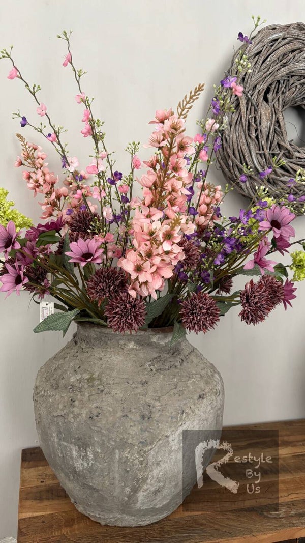 Met de frisse charme van spring flowers, de zoete geurbeleving van seringen, de vrolijke volheid van chrysanten en de ranke elegantie van vingerhoedskruid, brengt dit boeket een zachte, dromerige sfeer in elke ruimte.