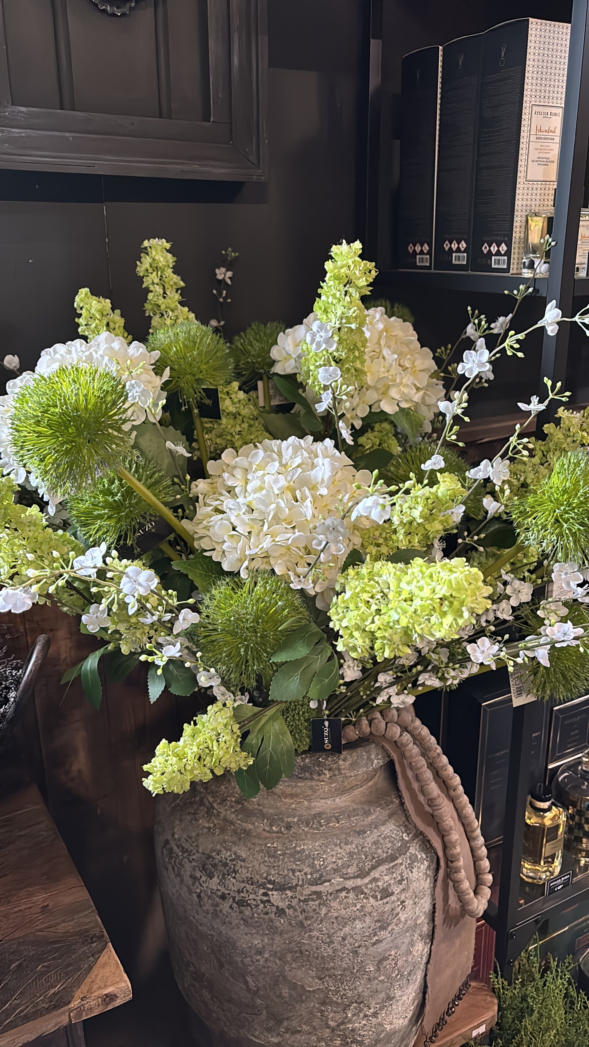 Deze witte kunsthortensia is een elegante en onderhoudsvrije decoratie die het hele jaar door fris en stijlvol oogt. De bloem heeft volle, realistisch vormgegeven bloemtrossen met fijn afgewerkte bloemblaadjes in een zachte, zuiverwitte kleur. De bladeren zijn natuurgetrouw nagemaakt met een subtiele nervenstructuur en een rijke, groene tint. deze kunsthortensia is een duurzame en allergievrije oplossing voor elk interieur, ideaal voor zowel moderne als klassieke ruimtes. Perfect als los decoratief element in een vaas of als onderdeel van een groter bloemstuk.