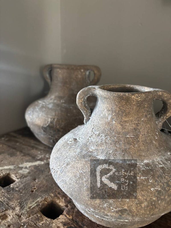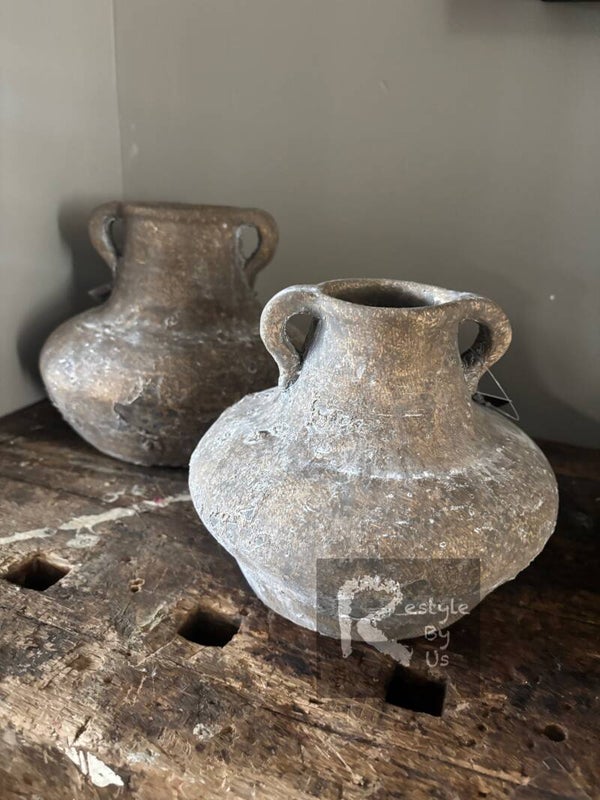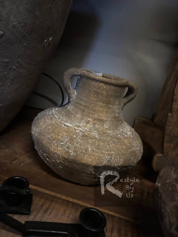 Kruikje Willem is een decoratieve vaas in klassieke kruikvorm met handvatten aan beide zijden. De robuuste uitstraling en verweerde steenlook maken dit item een prachtig accent in landelijke, sobere of industriële interieurs.