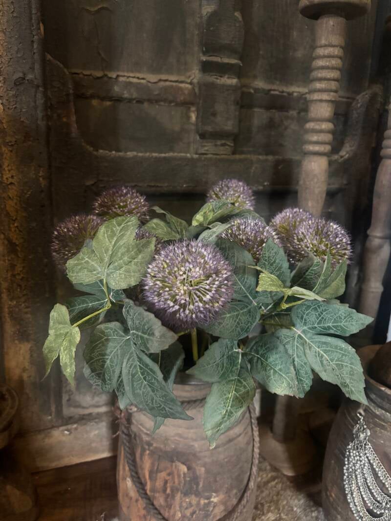 Deze kunst Aliumbol is een stijlvolle en natuurgetrouwe replica van de geliefde sierui. Met haar grote, bolvormige bloei en verfijnde details is ze nauwelijks van echt te onderscheiden. Perfect voor een langdurige decoratie in huis, kantoor of etalage, zonder onderhoud.