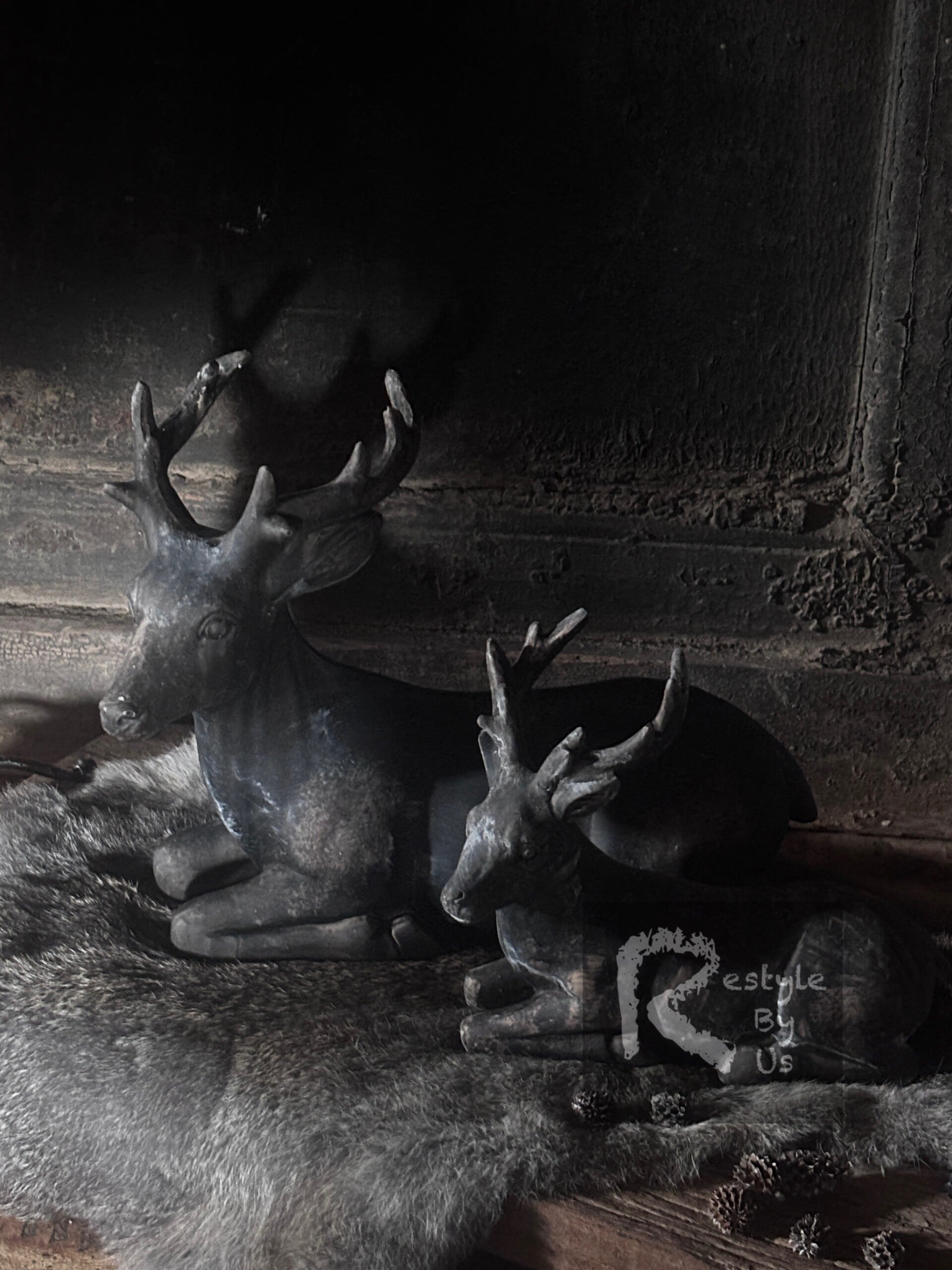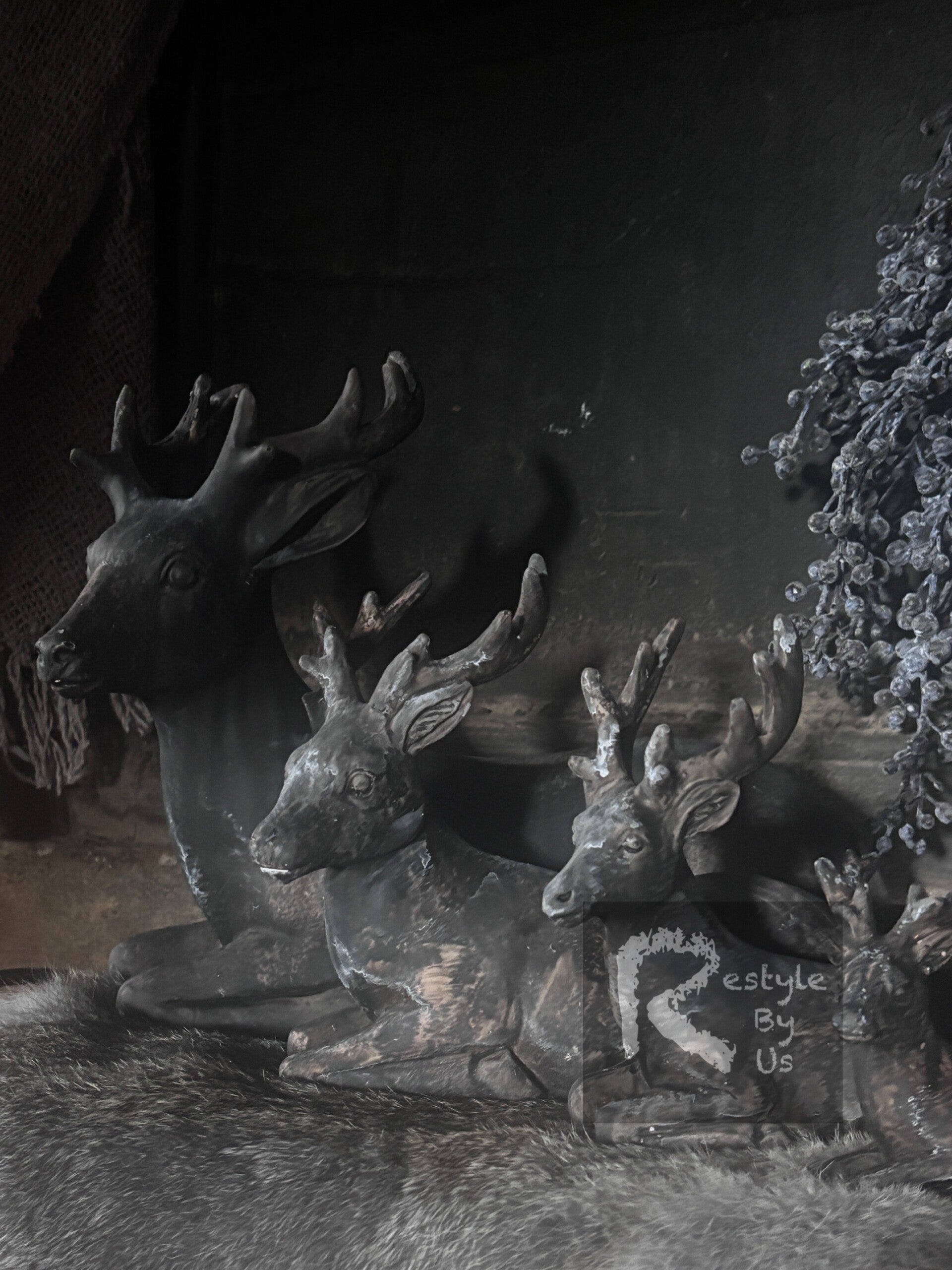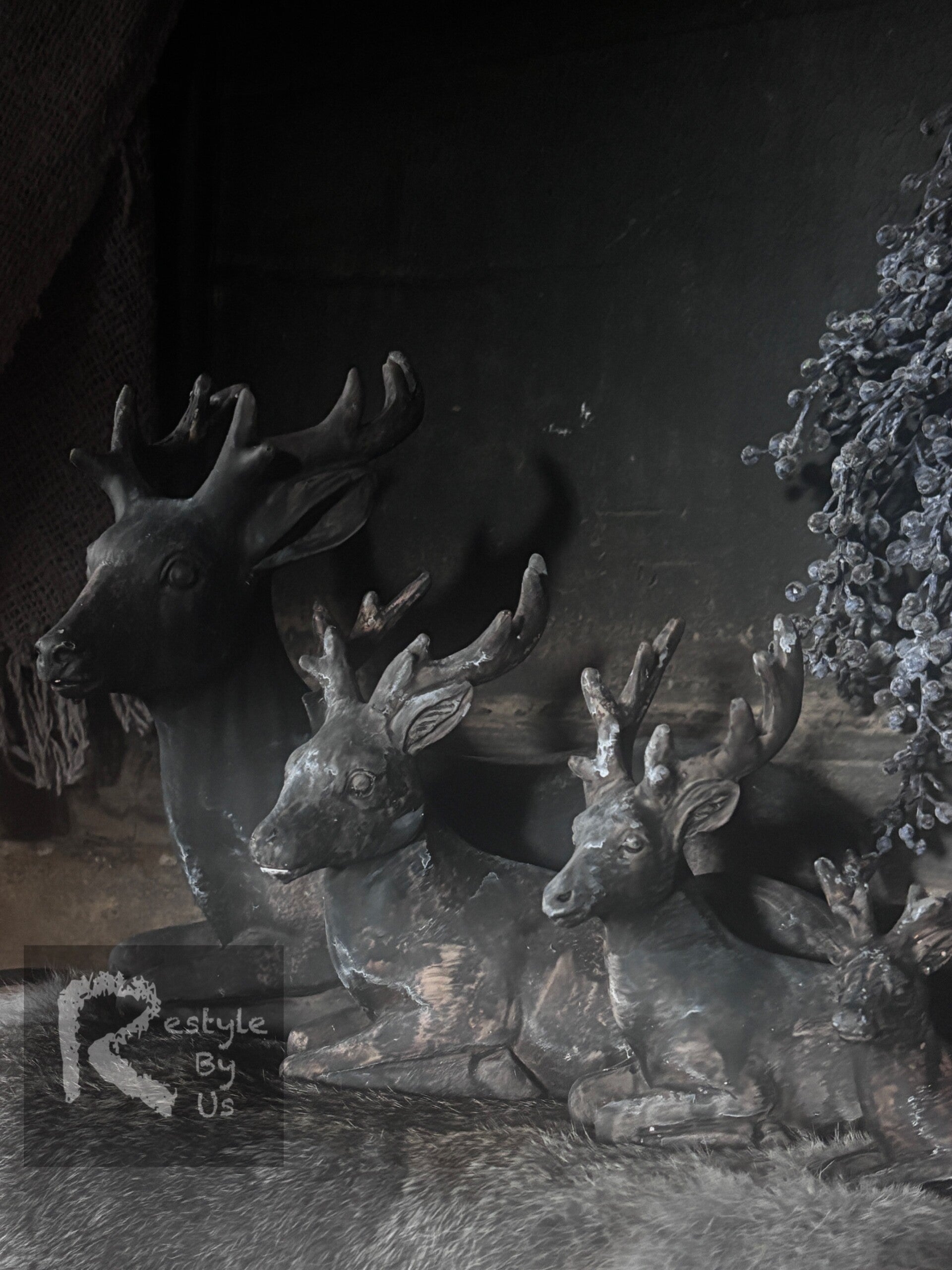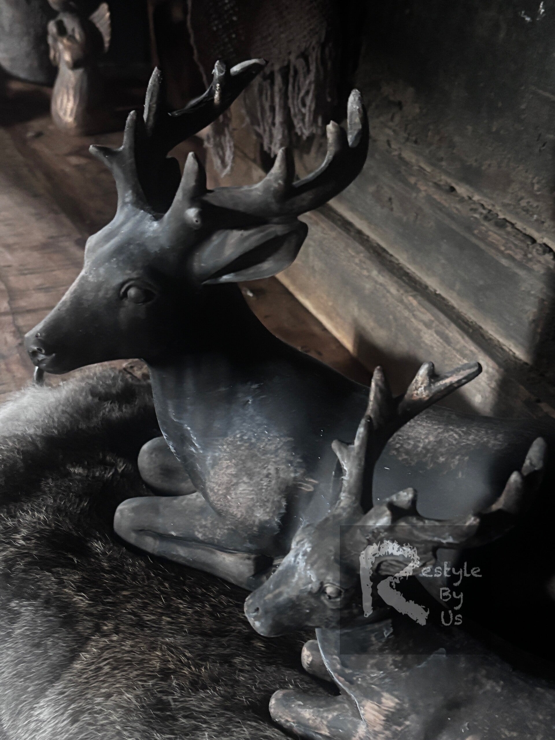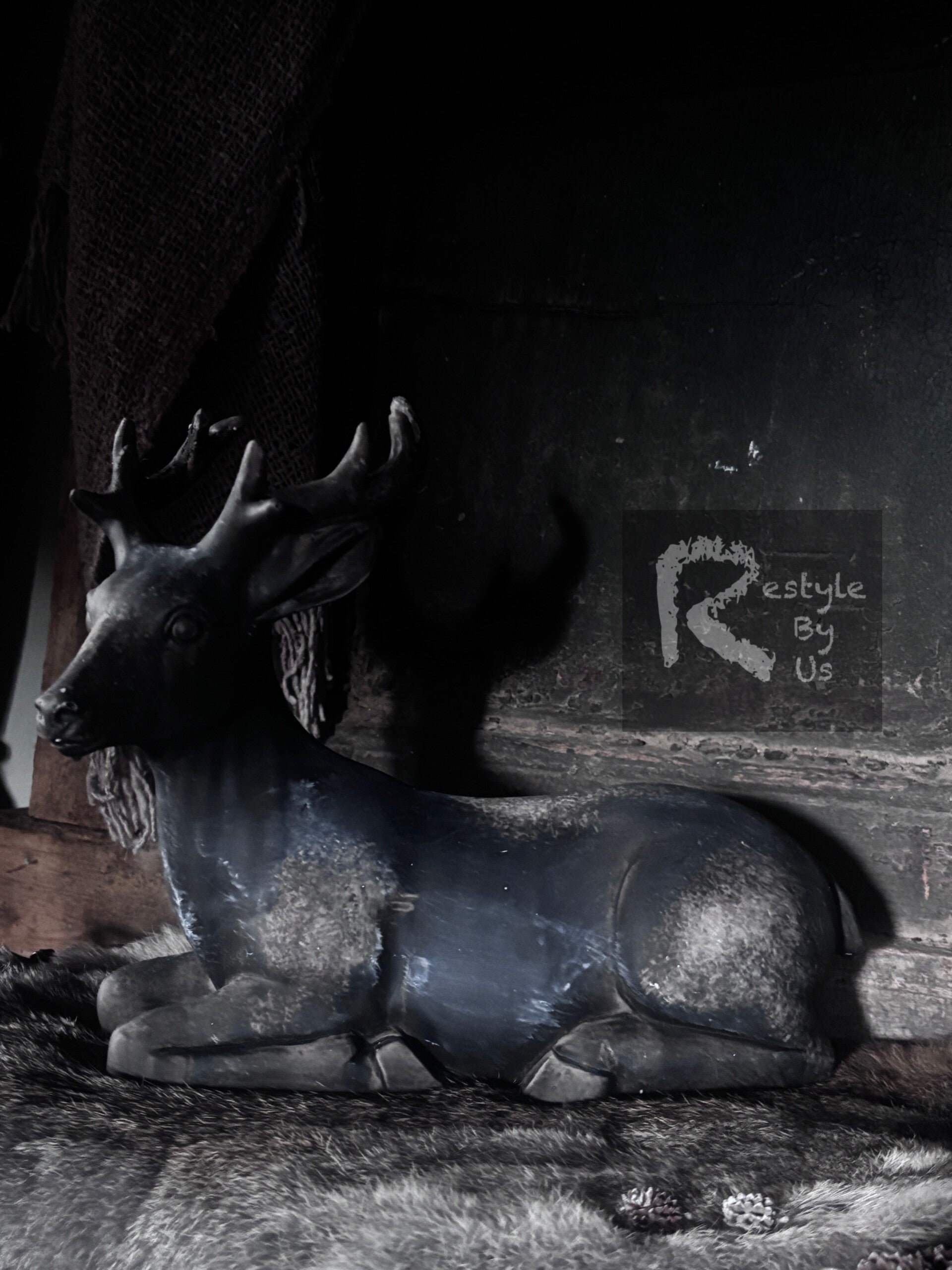 Polystone beeldje van een hert in liggende positie.