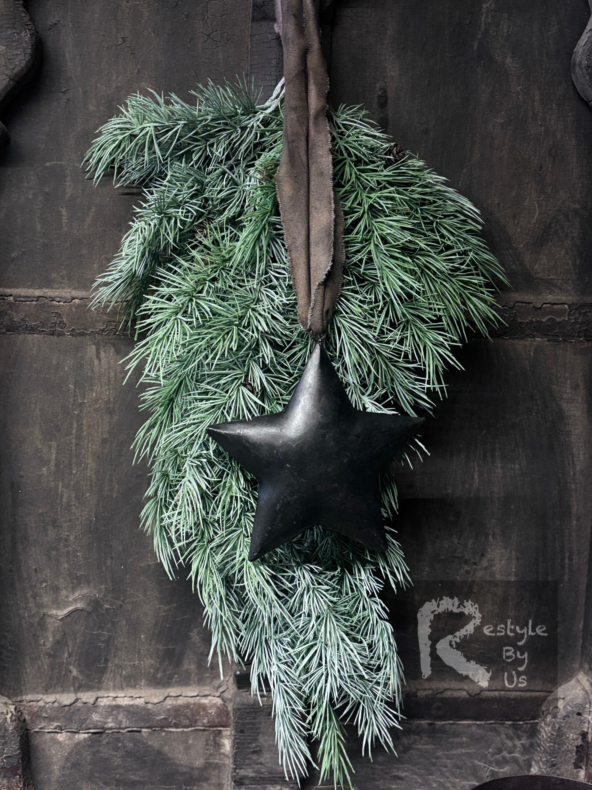 De sterren zijn voorzien van een stevig koord de maat L heeft een stoer lint, zodat je ze gemakkelijk kunt ophangen aan een krans, deur, kast of muur. Dankzij het strakke design in zwart metaal combineren ze moeiteloos met andere decoraties en materialen zoals hout, linnen of groen.