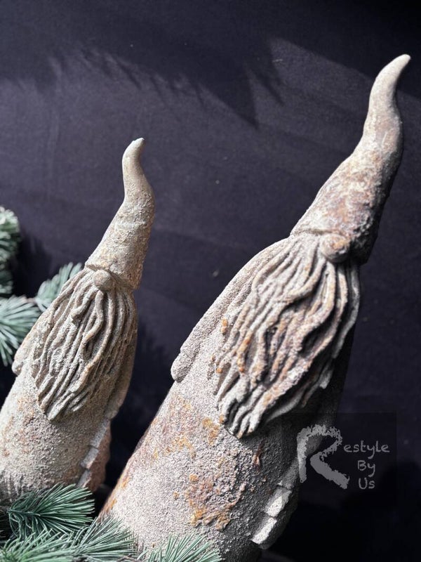 Unieke gnoom beelden met een robuuste, steenlook afwerking. Perfect als landelijke kerstdecoratie of als sfeervol woonaccessoire
