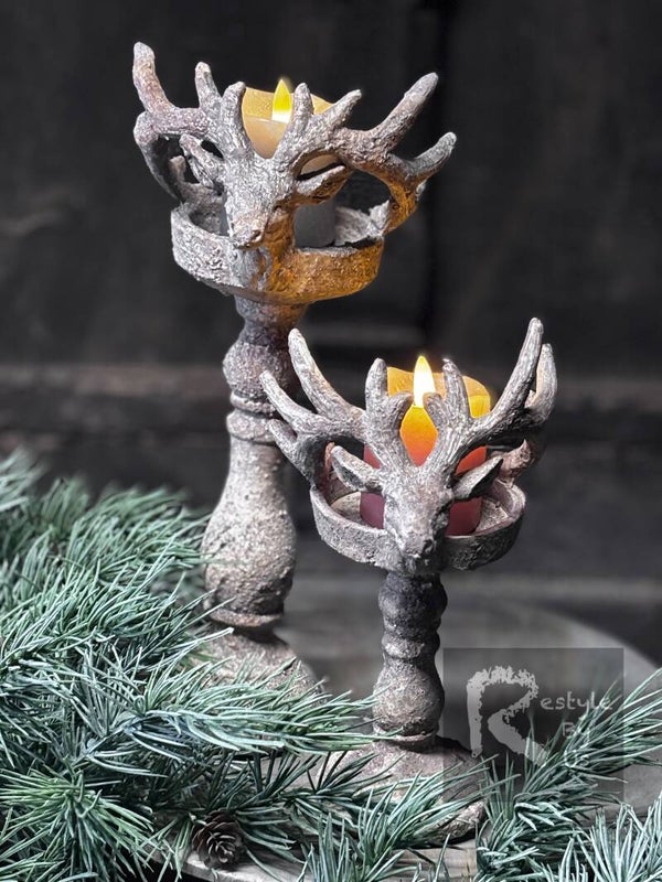 De kandelaar Bernie is een echte blikvanger in ieder interieur. Met zijn stoere verweerde steenlook en gedetailleerde hertenkop straalt hij zowel kracht als elegantie uit. Deze bijzondere kandelaar is perfect voor liefhebbers van een landelijke, sobere of industriële woonstijl.