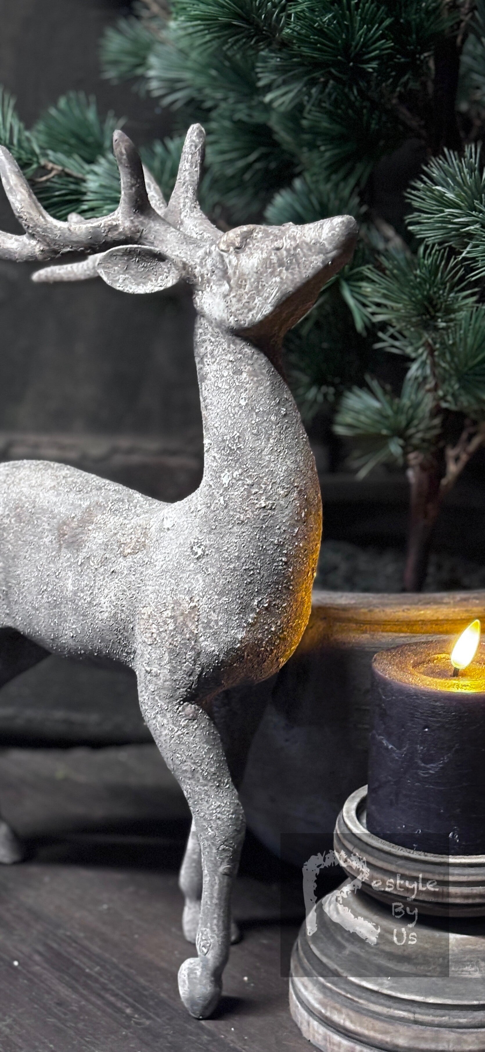 Decoratief hert Orion in verweerde steenlook. Stijlvolle landelijke kerstdecoratie en tijdloos woonaccessoire voor elk interieur.