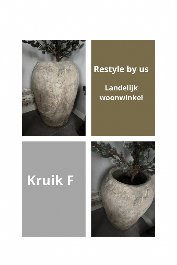 Ontdek onze grote, authentiek ogende landelijke kruiken van circa 75–80 cm hoog en een diameter van ongeveer 50 cm. Elke kruik is volledig uniek dankzij de natuurlijke, doorleefde structuur en robuuste afwerking. Deze bijzondere woonaccessoires brengen direct warmte, karakter en sfeer in ieder interieur.