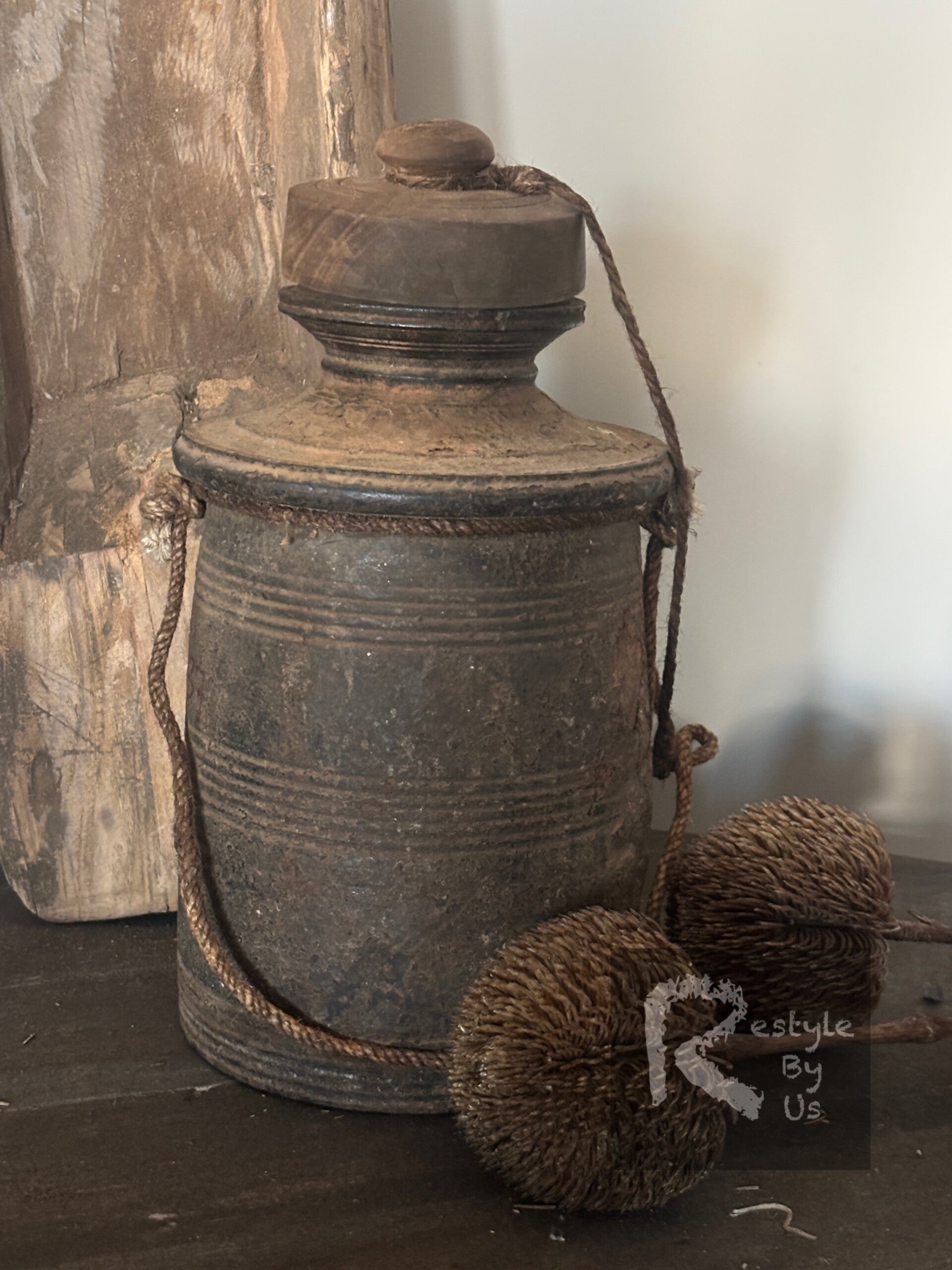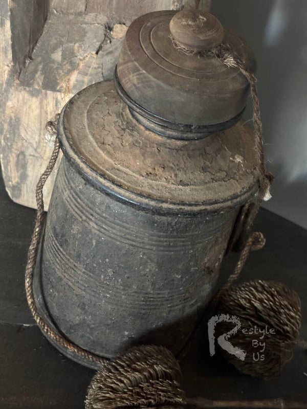 Deze prachtige Nepalese pot in Hoffz stijl is een echte blikvanger voor een landelijk en sober interieur. De pot is handgemaakt en heeft een doorleefde uitstraling met natuurlijke verwering, aardse tinten en een robuuste vorm. Het touwdetail en de originele deksel versterken het authentieke karakter.