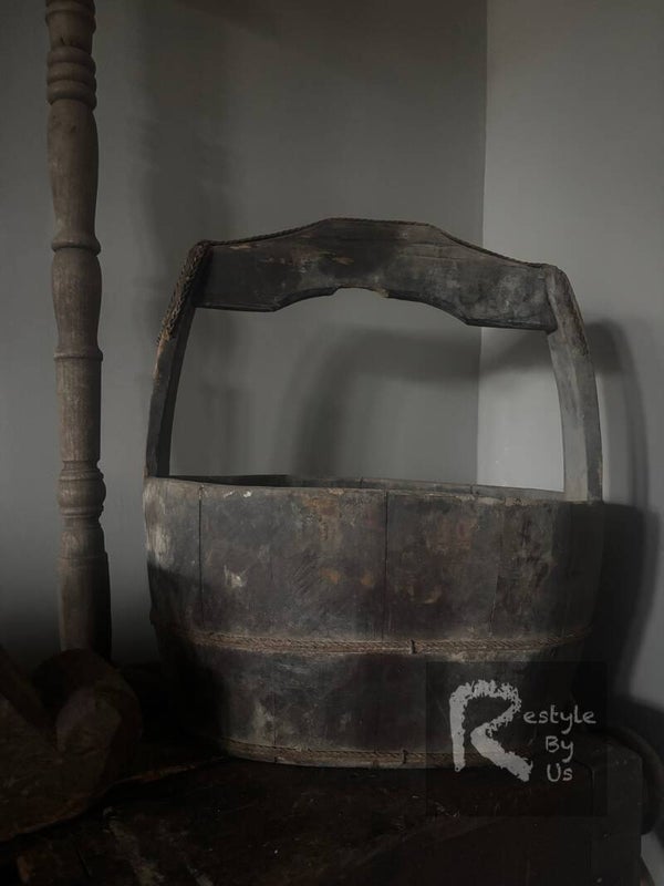 Deze authentieke houten olijfbak heeft een prachtige verweerde look en ademt karakter. Oorspronkelijk gebruikt tijdens de olijvenoogst in Zuid-Europa, is dit nu een uniek decoratief stuk voor een landelijke of sobere woonstijl.